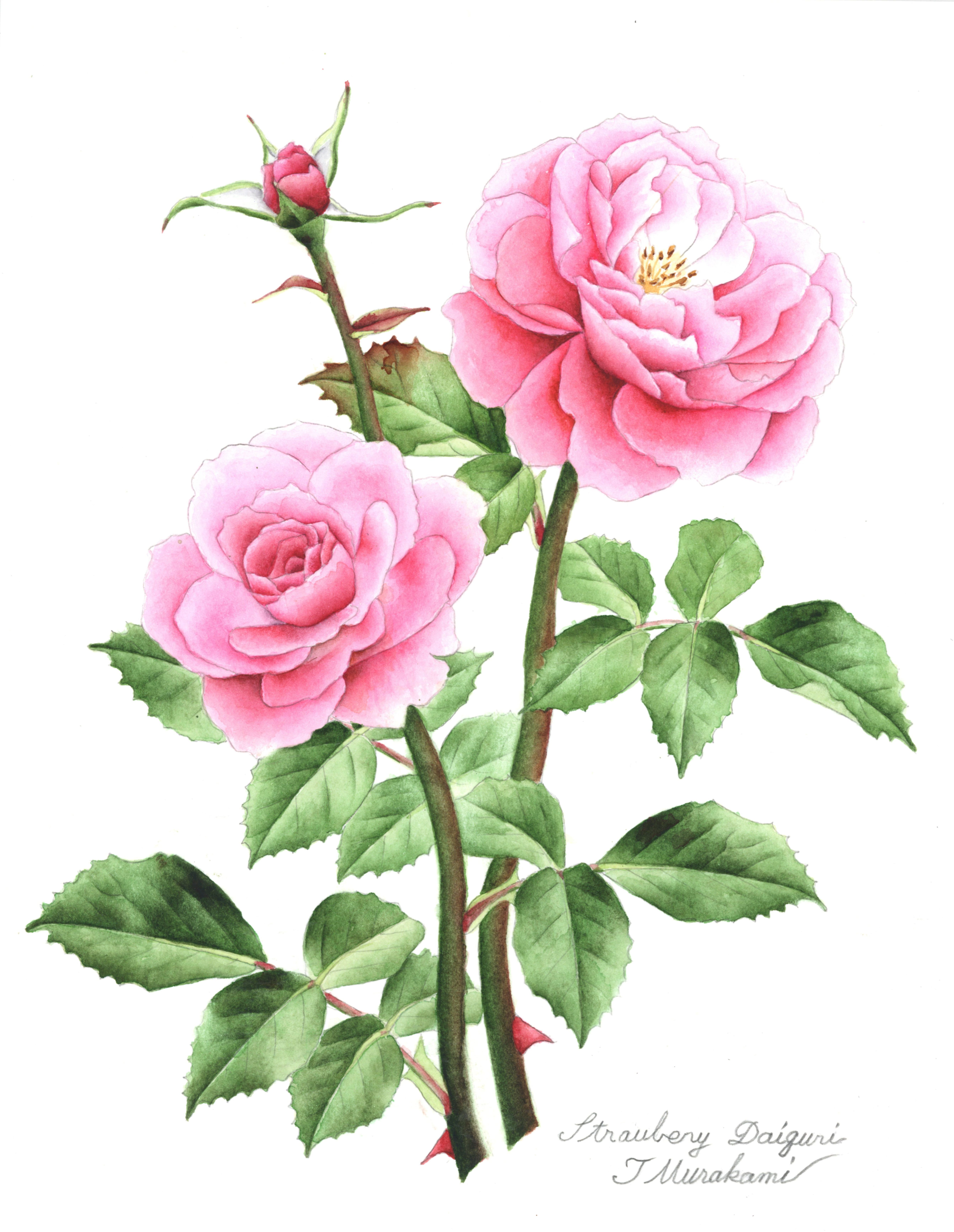 私の画くバラの花は、そのバラの特徴を示す最も形の美しいバラをほぼ実物大で画いています。